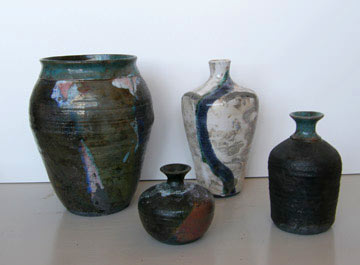 MIDDLE BACK: John Warfel, JW#15, Paddled Raku, 7 3/4" Tall x 4" Diameter, $95.00 SOLD